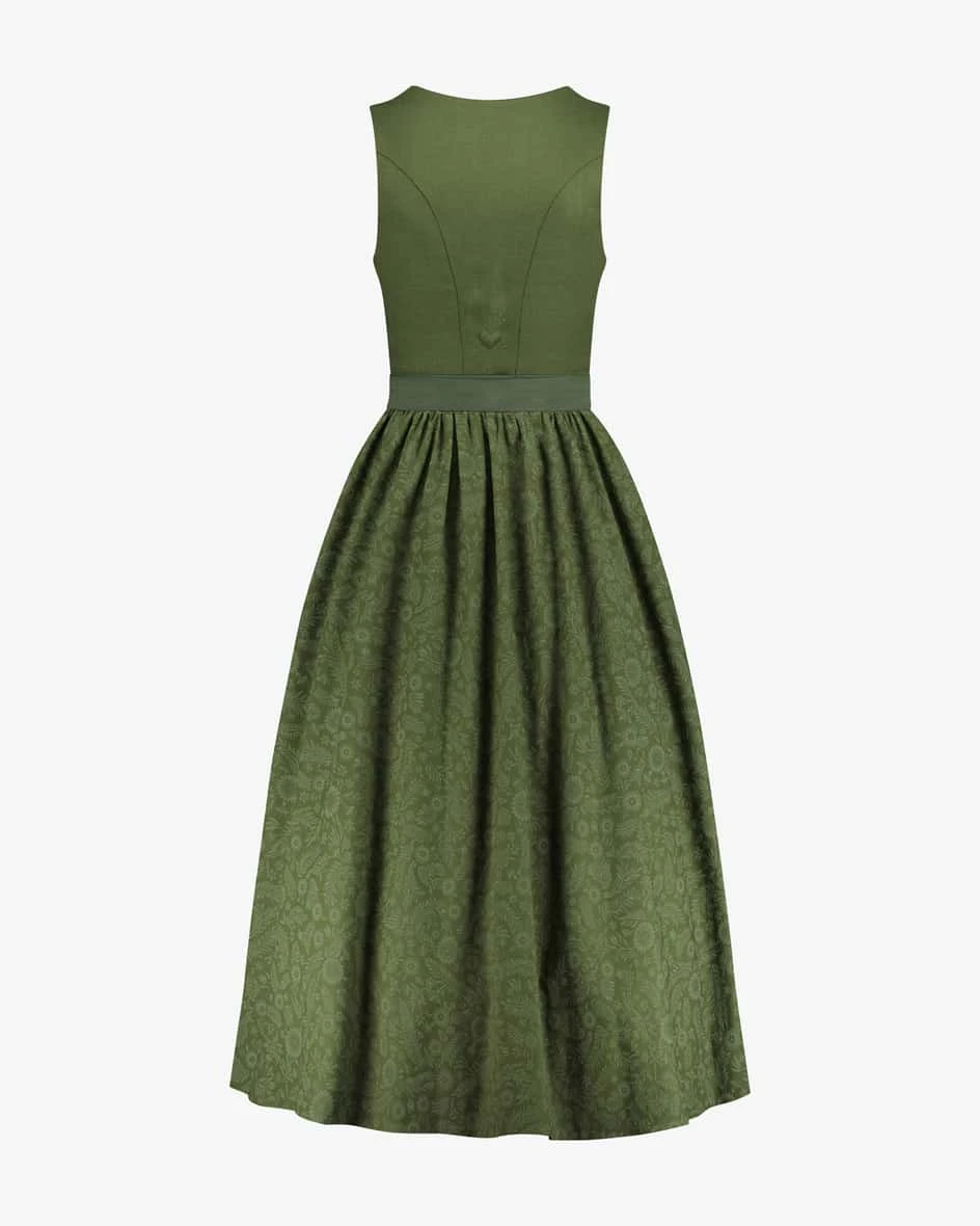 Wiesndirndl lang mit Schürze für Damen von LODENFREY in Oliv.