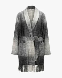 Wollmantel für Damen von Agnona in Grau und Creme. Dank des Alpakawoll-Mixes
