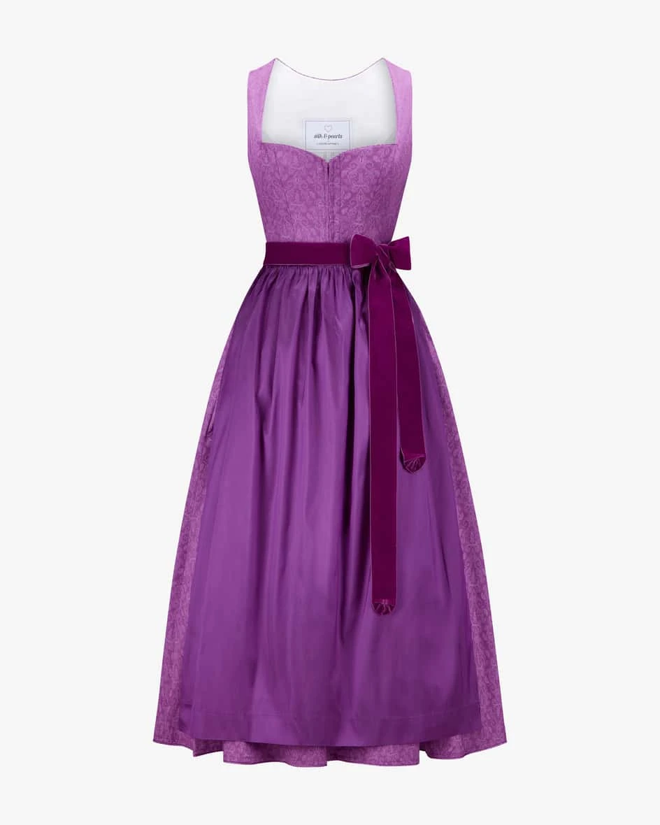 Dirndl lang mit Schürze für Damen von Silk & Pearls x LODENFREY in Violett. Das