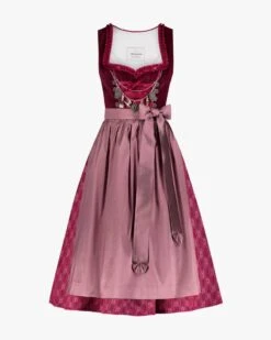 Midi-Dirndl mit Seidenschürze für Damen von Silk & Pearls in Beere,
